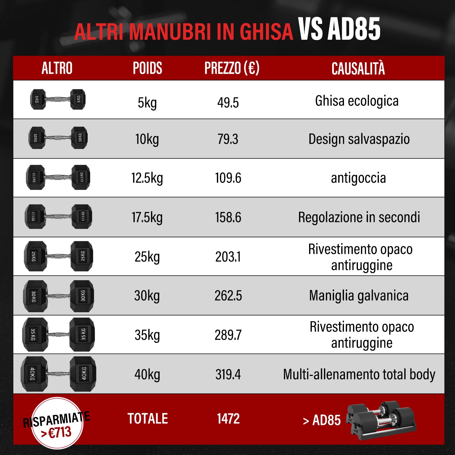 -Sostituire 8 paia di manubri. (24 paia se si utilizza il nostro sistema magnetico di aggiunta dei pesi).