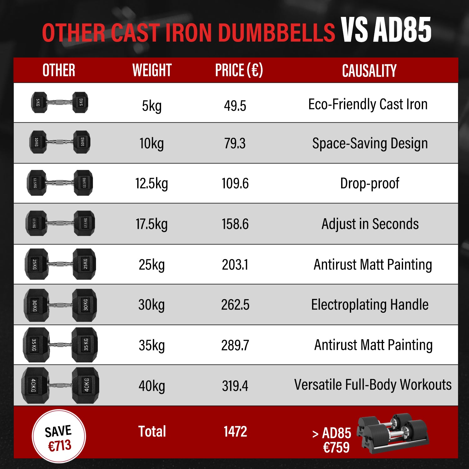 Combine text with an image to highlight the product, collection or the blog article of your choice. Add availability or stilinations. You can even submit a rating. The AD85 dumbbell set uses plates with a smaller diameter to maintain the balance during training. The thicker 3.56 cm handle also ensures a better grip experience. It is designed for people of all size and weight.
